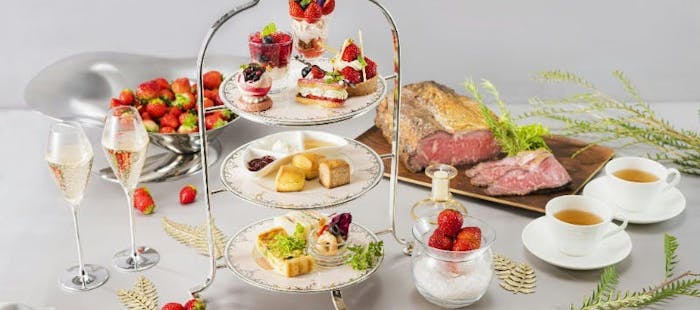 また、20種類以上の紅茶やスパークリングワインのフリーフローが付いており、爽やかな一杯とともに苺の甘酸っぱさを存分に堪能できます。最上階からのパノラマビューと共に、優雅なひとときを過ごしてみてはいかがでしょうか。